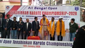 নিজস্ব প্রতিনিধি, শুভ ঘোষ, কলকাতা:- দমদম ২০নং ওয়ার্ড জয়পুর সারদা পল্লীর স্পোর্টস লাভার ইনডোর ক্রিকেট মাঠে অল বেঙ্গল টাইকোসিন ক্যারাটে চ্যাম্পিয়নশিপ ২০২৬ বং তাইকোসিন ক্যারাটে ডু- অ্যাসোসিয়েশন অফ বেঙ্গল উদ্যোগে একটি ক্যারাটে চ্যাম্পিয়নশিপের ৬০০ জন প্রতিযোগী এই চ্যাম্পিয়নশিপে আয়োজন করেন।আজকে মূলত উপস্থিত ছিলেন সংস্থার চিফ টেকনিক্যাল ডাইরেক্টর হান্সি হাসরত খান, সেন্সাই প্রদীপ শিকারিয়া ব্ল্যাক বেল্ট থার্ড ডান জাপান, সেন্সাই মনোজ প্রসাদ ব্ল্যাক বেল্ট ৫ ডান জাপান, ক্যারাটে অ্যাসোসিয়েশনের সেক্রেটারি হ্যানিস জয়দেব মন্ডল, অ্যাসোসিয়েশনের প্রেসিডেন্ট হানিস প্রেমজিৎ সেন, পশ্চিমবঙ্গের মাননীয় মন্ত্রী সুজিত বোস,সাউথ দমদম মিউনিসিপালিটি ভাইস চেয়ারম্যান নিতাই দত্ত, কাউন্সিলার কৃষ্ণপ্রসাদ দত্ত,কাউন্সিলর শ্রী সঞ্জয় দাস,এছাড়া আরো অনেক বিশিষ্ট অতিথিবর্গ উপস্থিত ছিলেন।
